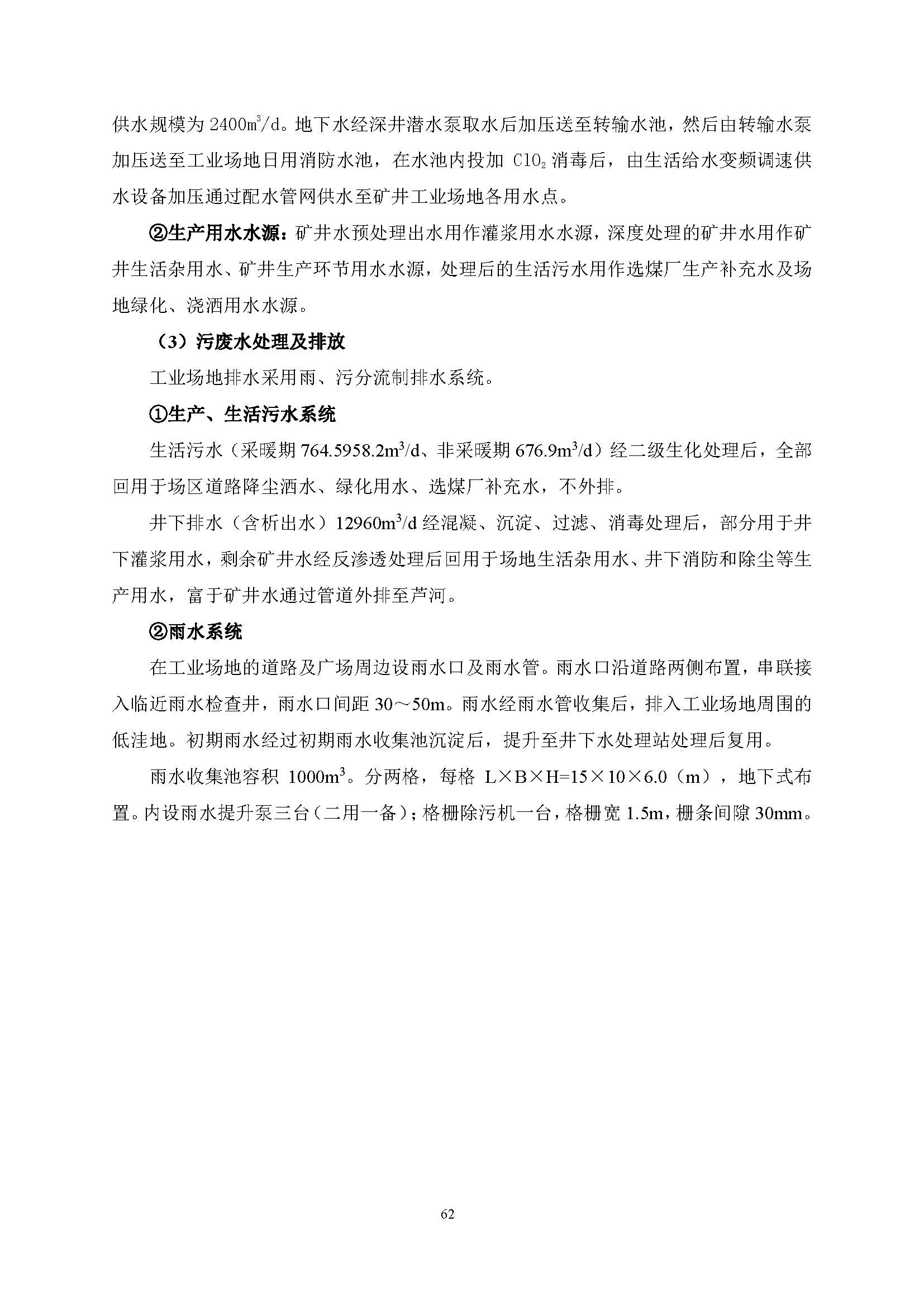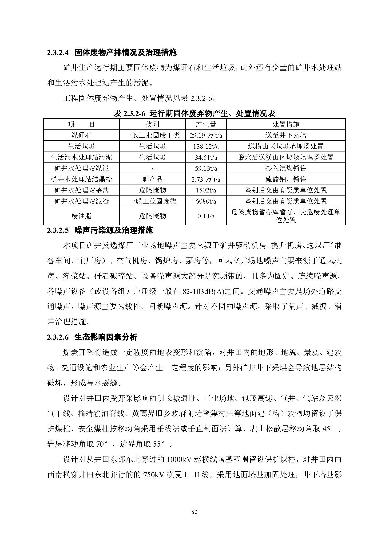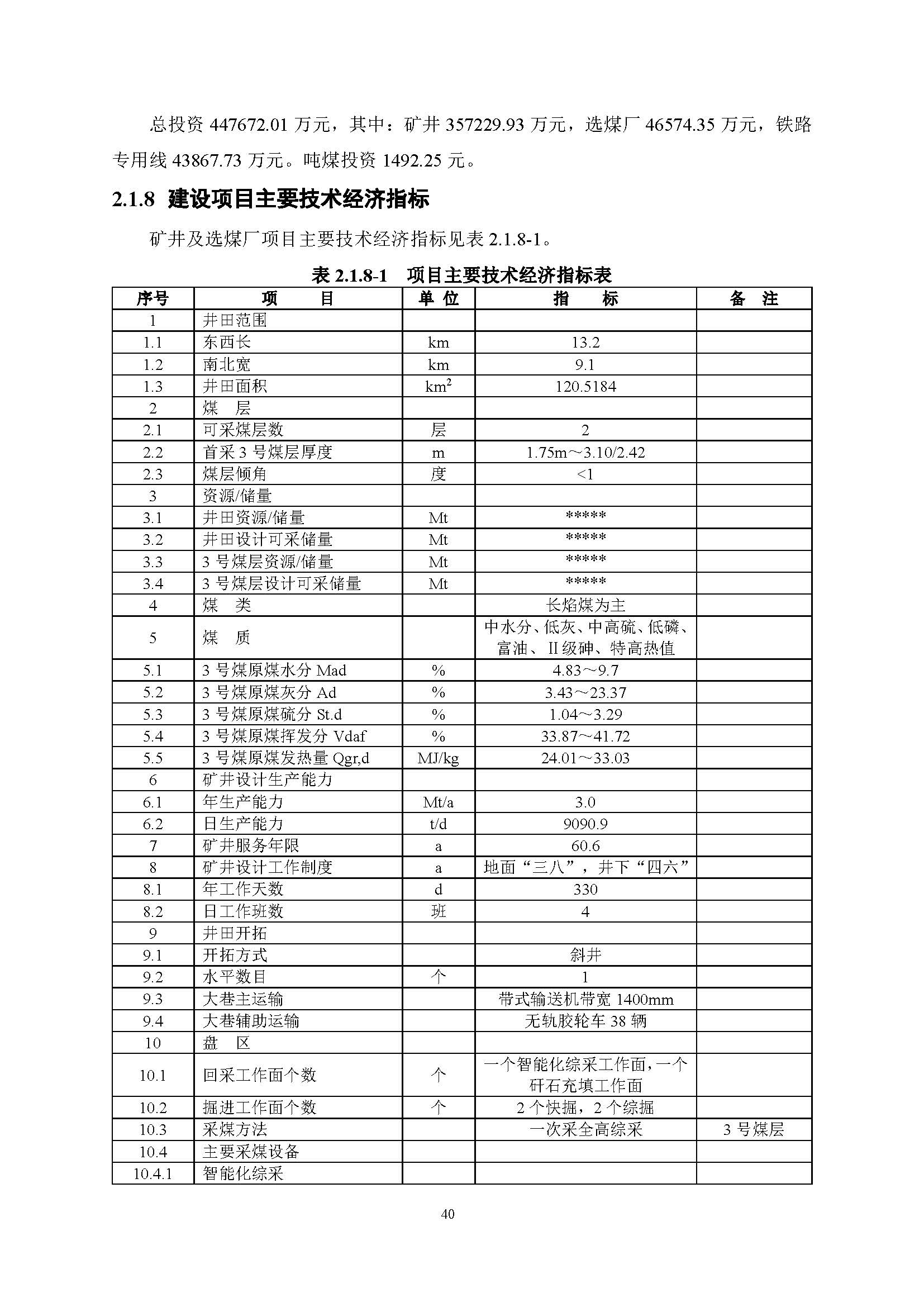 5)项目建筑概况:蒿界矿井是陕北侏罗纪煤田榆横矿区(南区)规划的大型矿井之一,行政区划隶属横山区和靖边县管辖。井田面积120.5184km2,规模3.0Mt/a,服务年限60.6a。全井田采用斜井开拓方式、单水平开拓,井下采煤方法采用长壁综合机器化采煤方法,全部垮落法管理顶板。配套选煤厂建筑规模3.00Mt/a,产品煤通过铁路外运